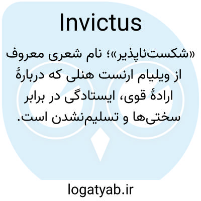 📌 شعری محبوب از اواخر قرن نوزدهم نوشته‌ی نویسنده‌ی انگلیسی ویلیام ارنست هنلی. اینویکتوس در لاتین به معنای «شکست‌ناپذیر» است. گوینده در این شعر، قدرت خود را در مواجهه با سختی‌ها اعلام می‌کند: سرم خونین است، اما خم نشده‌ام... من ارباب سرنوشتم هستم؛ من ناخدای روحم هستم.