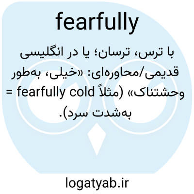 با ترس، ترسان؛ یا در انگلیسی قدیمی/محاورهای: «خیلی، بهطور وحشتناک» (مثلاً fearfully cold = بهشدت سرد).