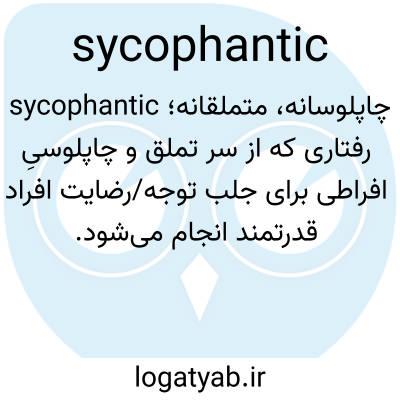 sycophantic چاپلوسانه، متملقانه؛ رفتاری که از سر تملق و چاپلوسیِ افراطی برای جلب توجه/رضایت افراد قدرتمند انجام می‌شود.