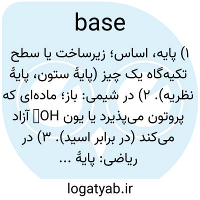 📌 ترکیبی که با یک اسید واکنش میدهد و نمکی مانند آمونیاک، هیدروکسید کلسیم یا برخی ترکیبات آلی حاوی نیتروژن تشکیل میدهد.