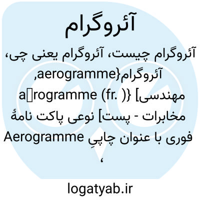 {aerogramme, aérogramme (fr. )} [مهندسی مخابرات - پست] نوعی پاکت نامۀ فوری با عنوان چاپیِ Aerogramme، به شکل ورقۀ کاغذی که لبه های چسب دارِ آن را تا می زنند و ابعاد آن در احکام اتحادیۀ جهانیِ پست تعریف شده است متـ. پاکت نامۀ هوایی
