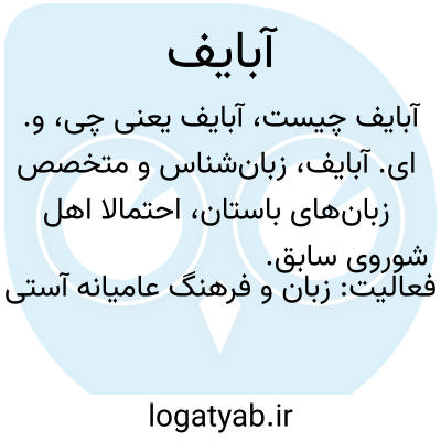 و. ای. آبایف، زبان‌شناس و متخصص زبان‌های باستان، احتمالا اهل شوروی سابق. فعالیت: زبان و فرهنگ عامیانه آستی (آسی)، مسکو - لنینگراد، ۱۹۴۹ قبایل اسکیتی در نام‌های خاص.