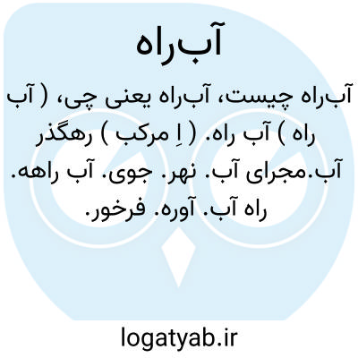 ( آب راه ) آب راه. ( اِ مرکب ) رهگذر آب.مجرای آب. نهر. جوی. آب راهه. راه آب. آوره. فرخور.