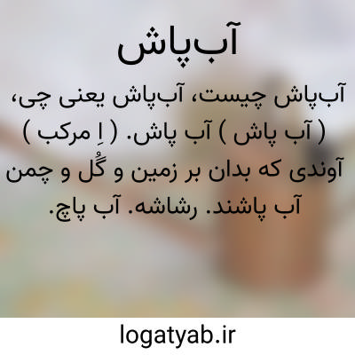 ( آب پاش ) آب پاش. ( اِ مرکب ) آوندی که بدان بر زمین و گُل و چمن آب پاشند. رشاشه. آب پاچ.
