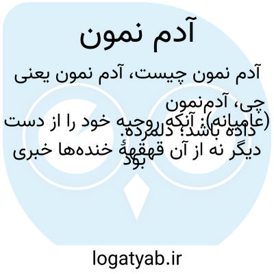 (عامیانه): آنکه روحیه خود را از دست داده باشد؛ دلمرده. دیگر نه از آن قهقههٔ خندهها خبری بود و نه از داد و فریادها. شده بود آدمنمون. «میرصادقی»
