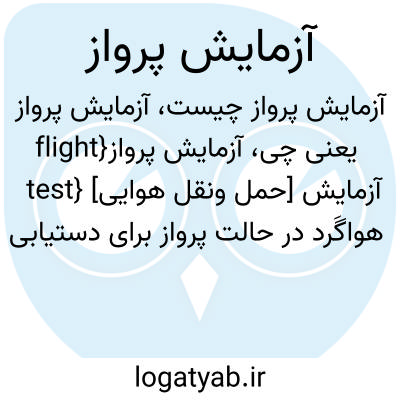 {flight test} [حمل ونقل هوایی] آزمایش هواگَرد در حالت پرواز برای دستیابی به اهداف مشخص یا آزمودن قطعۀ نصب شده بر آن
