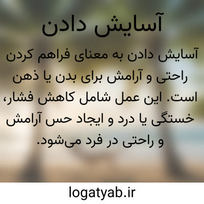 آسایش دادن به معنای فراهم کردن راحتی و آرامش برای بدن یا ذهن است. این عمل معمولاً شامل کاهش فشار، خستگی یا درد و ایجاد حس آرامش و راحتی در فرد می‌شود. در زمینه فیزیکی، آسایش دادن می‌تواند به استراحت دادن اندام‌ها و رفع خستگی‌های جسمانی اشاره داشته باشد.