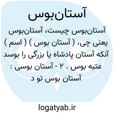 ( آستان بوس ) ( اسم ) آنکه آستان پادشاه یا بزرگی را بوسد عتبه بوس. ۲ - آستان بوسی: آستان بوس تو در خواب تمنا کردند ( خسرو دهلوی ).