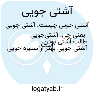 جمله سازی با آشتی جویی گر پس از جنگ آشتی جویی، نگیری در کنار تا هم آن دم نیز بیجنگی نباشد آشتی گر ای دون کهه با شهریار جهان همی آشتی جویی اندر نهان