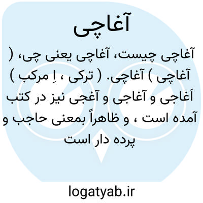 ( آغاچی ) آغاچی. ( ترکی، اِ مرکب ) اَغاجی و آغاجی و آغجی نیز در کتب آمده است، و ظاهراً بمعنی حاجب و پرده دار است، و اوچون واسطه بلاغ میان شاه و مردم یا وزراء بوده است: ملطفه به نزدیک اغاجی خادم خاصه بردم و بدو دادم و جائی فرود آمدم نزدیک سرای پرده وقت سحرگاه فراشی آمد و مرا بخواند برفتم اَغاجی مرا پیش برد. ( تاریخ بیهقی ). استادم رقعتی نوشت سخت درشت و بوثاق اَغاچی آمد و رقعه بدو داد و ضمان کرد که وقتی سره جوید و برساند و پس بازآمد بدیوان و بر آغاچی پیغام را شتاب میکرد. ( تاریخ بیهقی ). رقعتی نوشتم بامیر چنانکه رسم است که نویسند در معنی استعفا... و آن رقعه به اَغاچی دادم و برسانید. ( تاریخ بیهقی ). و در جامعالتواریخ تحت عنوان الحجاب، یعنی حجاب طغرل بیک سلجوقی نام یکی از آنان را بدینگونه برده است: النذر الاغاجی. و نیز در راحةالصدور راوندی نام حاجبی را نگاشته است بدین صورت: الحاجب عبدالرحمن الب زن الاَغاجی. الحاجب عبدالرحمن الاَّغاجی.