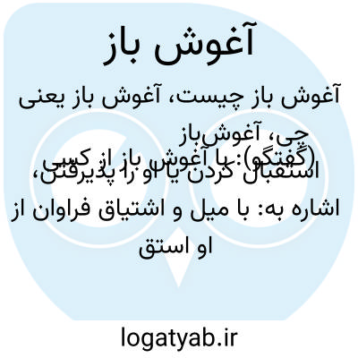(گفتگو): با آغوش باز از کسی استقبال کردن یا او را پذیرفتن، اشاره به: با میل و اشتیاق فراوان از او استقبال کردن یا او را پذیرفتن. با آغوش باز از مهمانان استقبال کرد.