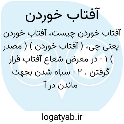 ( آفتاب خوردن ) ( مصدر ) ۱ - در معرض شعاع آفتاب قرار گرفتن. ۲ - سیاه شدن بجهت ماندن در آفتاب. ۳ - رنج کشیدن.