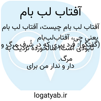 (گفتگو): فرد پیری که در شُرف مرگ و نابودی است؛ سالخورده نزدیک به مرگ. دار و ندار من برای شما چند نفر اولاد است... والّا از من گذشته و آفتاب لب این بامم. «نظامالسلطنه»