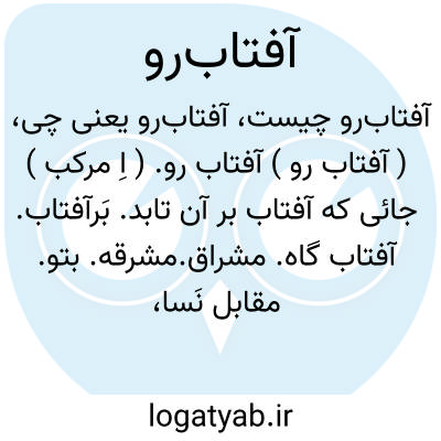 ( آفتاب رو ) آفتاب رو. ( اِ مرکب ) جائی که آفتاب بر آن تابد. بَرآفتاب. آفتاب گاه. مشراق.مشرقه. بتو. مقابل نَسا، نَسار، نَسَر: