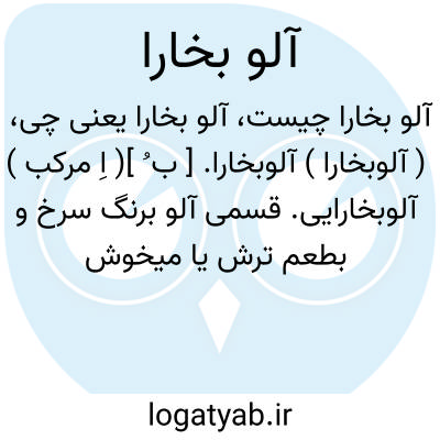 ( آلوبخارا ) آلوبخارا. [ ب ُ ]( اِ مرکب ) آلوبخارایی. قسمی آلو برنگ سرخ و بطعم ترش یا میخوش که پوست آن را کَنند و در خیک یا ظروف دیگر کنند و بشهرها برند. اجاص. آلو خراسانی. برقوق.