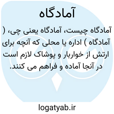 ( آمادگاه ) اداره یا محلی که آنچه برای ارتش از خواربار و پوشاک لازم است در آنجا آماده و فراهم می کنند.