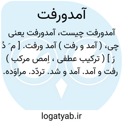 ( آمد و رفت ) آمد ورفت. [ م َ دُ رَ ] ( ترکیب عطفی، اِمص مرکب ) رفت و آمد. آمد و شد. تردّد. مراوَده. ایاب و ذهاب.