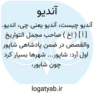 اندیو. [ اَ ] ( اِخ ) صاحب مجمل التواریخ والقصص در ضمن پادشاهی شاپور اول آرد: شاپور... شهرها بسیار کرد چون شابور، و نیشابور، شادشاپور، بدان اندیوشاپور، شاپور خواست... به از اندیوشاپور، جندیو شابور است از خوزستان، اندیو نام انطاکیه است بزبان پهلوی، به از اندیو یعنی از انطاکیه بهتر است. ( ص 64 ). اصل نام این ( جندیشابور خوزستان ) اندیو شاپور است و اندیو پهلوی نام انطاکیه است. یعنی این شهرک انطاکیه شاپور است و عرب لفظ آن گردانیده اند جندیشاپور نویسند. ( فارسنامه ابن البلخی چ کمبریج ص 63 ). در شاهنامه نیز بدین نام برمی خوریم: