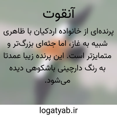 پرنده‌ای از خانواده اردکیان با ظاهری شبیه به غاز، اما جثه‌ای بزرگ‌تر و متمایزتر است. این پرنده زیبا عمدتاً به رنگ دارچینی باشکوهی دیده می‌شود که با پاها و نوک سیاه‌رنگش تضادی چشم‌نواز ایجاد می‌کند. زیستگاه اصلی آنقوت‌ها تالاب‌ها، دریاچه‌ها و رودخانه‌های آب شیرین است، جایی که در آرامش و به دور از هیاهو به زندگی خود ادامه می‌دهند. آنقوت‌ها اغلب به صورت جفت یا گروه‌های کوچک زندگی می‌کنند و به خاطر وفاداری در جفت‌گیری و مراقبت از جوجه‌هایشان شهرت دارند. پرواز آنها قدرتمند و باشکوه است و اغلب می‌توان آنها را در حال مهاجرت‌های فصلی طولانی مشاهده کرد که زیبایی بی‌بدیلی به آسمان می‌بخشند.