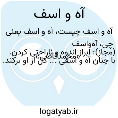 ویکی واژه آهواسف (مجاز): ابراز اندوه و ناراحتی کردن. با چنان آه و اسفی... دل از او برکند. «محمدقاضی»