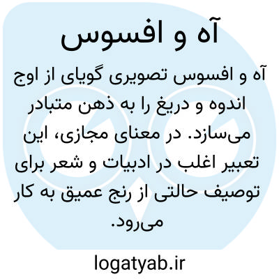در معنای لغوی و مستقیم‌تر در زبان فارسی، آه و افسوس به احساسی ژرف از حسرت و اندوه اشاره دارد. این واژه، تلخیِ فرصت‌های از دست رفته، دردِ اشتباهات گذشته، یا غمِ ناشی از نتایج ناگوار را در بر می‌گیرد. این حس اغلب با پشیمانی و توبه همراه است و بازتابی از آرزوی گذشته‌ای متفاوت یا تمایل به جبرانِ اعمالی است که به ناراحتی کنونی انجامیده‌اند.