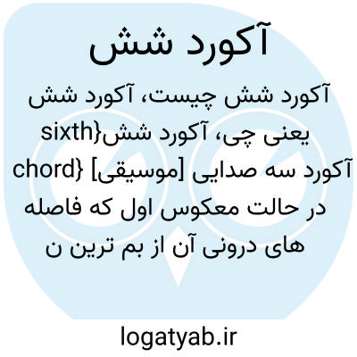 {sixth chord} [موسیقی] آکورد سه صدایی در حالت معکوس اول که فاصله های درونی آن از بم ترین نت تا هریک از دو نت بالا، سوم و ششم است متـ. آکورد معکوس اول chord in first inversion آکورد سه شش six-three chord