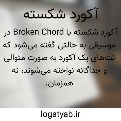 آکورد شکسته یا Broken Chord در موسیقی به حالتی گفته می‌شود که نت‌های یک آکورد به صورت متوالی و جداگانه نواخته می‌شوند، نه همزمان. در این حالت، شنونده همچنان آکورد را به عنوان یک کل می‌شناسد، اما نت‌ها به ترتیب یا الگوی خاصی اجرا می‌شوند، که به قطعه ریتم و حرکت بیشتری می‌بخشد.