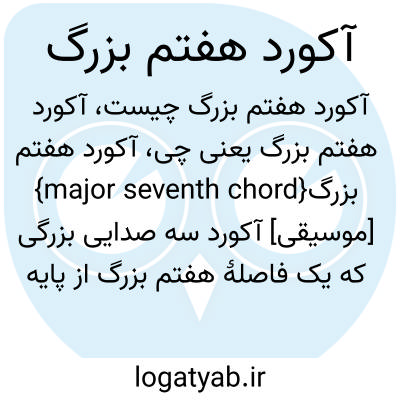 {major seventh chord} [موسیقی] آکورد سه صدایی بزرگی که یک فاصلۀ هفتم بزرگ از پایه به آن اضافه شده است متـ. آکورد هفتم بزرگ بزرگ major-major seventh chord