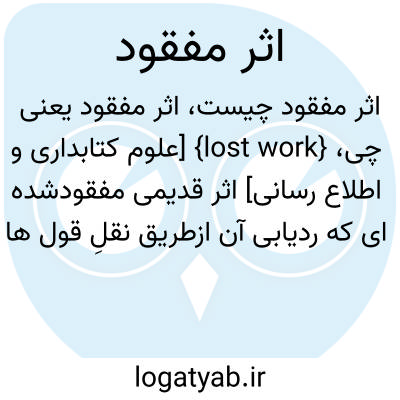 {lost work} [علوم کتابداری و اطلاع رسانی] اثر قدیمی مفقودشده ای که ردیابی آن ازطریق نقلِ قول ها و ارجاعات در آثار دیگران، به ویژه معاصران پدیدآور، امکان پذیر است متـ. اثر گمشده