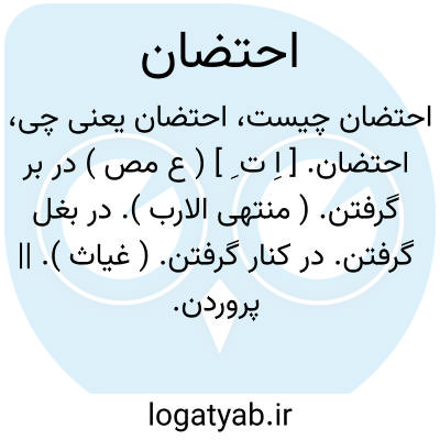 احتضان. [ اِ ت ِ ] ( ع مص ) در بر گرفتن. ( منتهی الارب ). در بغل گرفتن. در کنار گرفتن. ( غیاث ). || پروردن. دایگی کردن. ( منتهی الارب ). || بازداشتن. ( منتهی الارب ). || بازداشتن کسی را از حاجت وی. واداشتن از حاجت. || در زیر خود گرفتن مرغ، خایه را. خوابیدن مرغ برای جوجه برآوردن.