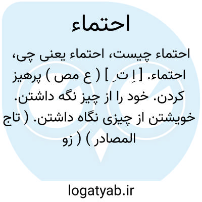 احتماء. [ اِ ت ِ ] ( ع مص ) پرهیز کردن. خود را از چیز نگه داشتن. خویشتن از چیزی نگاه داشتن. ( تاج المصادر ) ( زوزنی ). از چیز زیان دار پرهیز کردن. خویشتن داری. پرهیز. || پرهیز بیمار از مضرات. رژیم: