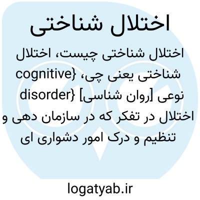 {cognitive disorder} [روان شناسی] نوعی اختلال در تفکر که در سازمان دهی و تنظیم و درک امور دشواری ایجاد می کند و بر حیطه های شناختی متعددی، مانند استدلال و برنامه ریزی و قضاوت، اثر می گذارد