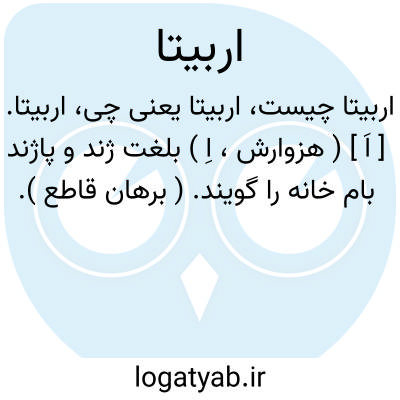 اربیتا. [ اَ ] ( هزوارش، اِ ) بلغت ژند و پاژند بام خانه را گویند. ( برهان قاطع ).