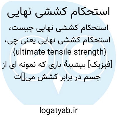 {ultimate tensile strength} [فیزیک] بیشینۀ باری که نمونه ای از جسم در برابر کشش میتواند تحمل کند
