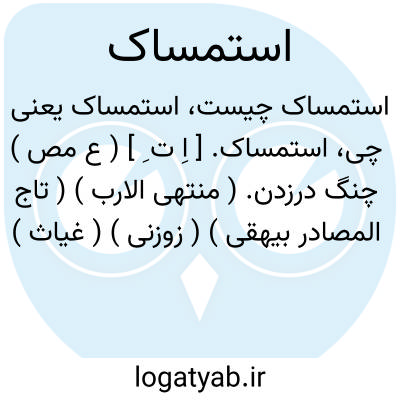 استمساک. [ اِ ت ِ ] ( ع مص ) چنگ درزدن. ( منتهی الارب ) ( تاج المصادر بیهقی ) ( زوزنی ) ( غیاث ). سخت داشتن دست و غیره در چیزها. اعتصام: استمساکاً به؛ تعویلاً به. || احتباس.