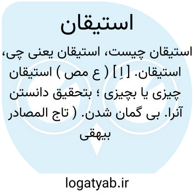 استیقان. [ اِ ] ( ع مص ) استیقان چیزی یا بچیزی؛ بتحقیق دانستن آنرا. بی گمان شدن. ( تاج المصادر بیهقی ) ( زوزنی ). بی گمان دانستن. بیقین دانستن. بیقین داشتن. بیقین کردن. یقین. || یقین خواستن.