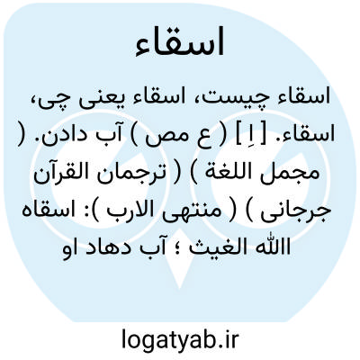 اسقاء. [ اِ ] ( ع مص ) آب دادن. ( مجمل اللغة ) ( ترجمان القرآن جرجانی ) ( منتهی الارب ): اسقاه اﷲ الغیث؛ آب دهاد او را خدای. || آب آشامانیدن. آب خورانیدن. || کسی را آب دادن برای چهارپای یا برای زمین. ( تاج المصادر بیهقی ). آب دادن چاروا یا زمین یا هر دو را. || دلالت کردن بر آب. || قیمت آب دادن. || نوبت آب معین کردن کسی را. ( منتهی الارب ). || فریاد رسیدن. ( تاج المصادر بیهقی ). || سَقْیاً لک یا سقاک اﷲ گفتن کسی را. ( از منتهی الارب ). || عیب و غیبت کردن. ( تاج المصادر بیهقی ): اسقی فلان ٌ فلاناً؛ غیبت کرد او را و عیب کرد. || مشک دادن یا پوست دادن تا مشک سازد. || مشک ساختن پوست را. ( منتهی الارب ). || باران خواستن و فرستادن. ( تاج المصادر بیهقی ).
