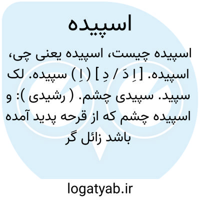 اسپیده. [ اِ دَ / دِ ] ( اِ ) سپیده. لک سپید. سپیدی چشم. ( رشیدی ): و اسپیده چشم که از قرحه پدید آمده باشد زائل گرداند. ( ذخیره خوارزمشاهی ). || تخمه اطفال از شیر که چون پنیری شیر خورده برگرداند. || سپیدی صبح. ( رشیدی ). || سپیدآب که زنان بر روی مالند و آن قلعی و اسرب سوخته و خاکستر باشد. ( رشیدی ).