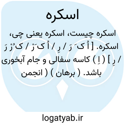 اسکره. [ اُ ک َ رَ / رِ / اُ ک َرْ / ک ُرْ رَ / رِ ] ( اِ ) کاسه سفالی و جام آبخوری باشد. ( برهان ) ( انجمن آرا ). کاسه گلین. کاسه گلی. ( جهانگیری ). کاسه. ( سروری ). اسکره و اسکوره پیمانه ایست که مقداری معین میگیرد و در اوزان و مکائیل طبی مذکور است و بمعنی مطلق پیمانه نیز استعمال کنند. سکره. سکوره. اسکرچه. سکرچه. ( رشیدی ):