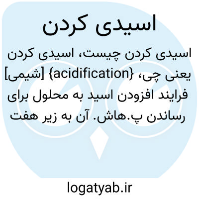 {acidification} [شیمی] فرایند افزودن اسید به محلول برای رساندن پ.هاش. آن به زیر هفت