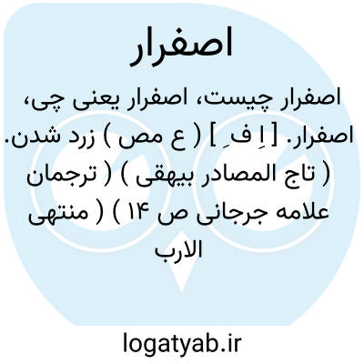 اصفرار. [ اِ ف ِ ] ( ع مص ) زرد شدن. ( تاج المصادر بیهقی ) ( ترجمان علامه جرجانی ص 14 ) ( منتهی الارب ) ( آنندراج ). اصفیرار. ( منتهی الارب ) ( آنندراج ): آثار اصفرار برصفحات رخسار او ظاهر شده بود. ( سندبادنامه ص 189 ).