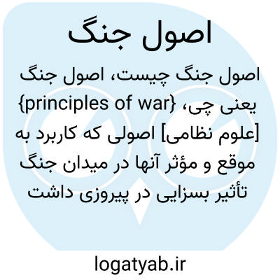{principles of war} [علوم نظامی] اصولی که کاربرد به موقع و مؤثر آنها در میدان جنگ تأثیر بسزایی در پیروزی داشته باشد