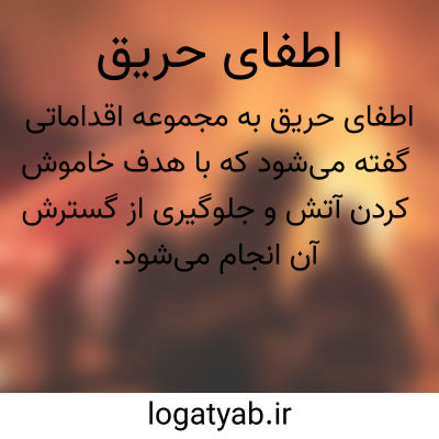 اطفای حریق به مجموعه اقداماتی گفته می‌شود که با هدف خاموش کردن آتش و جلوگیری از گسترش آن انجام می‌شود. این واژه شامل عملیات سریع و کنترل‌شده برای مهار شعله‌ها، کاهش خسارت و حفاظت از جان و مال افراد است. به عبارت دیگر، اطفای حریق به معنای مقابله با آتش و بازگرداندن شرایط به حالت امن است.