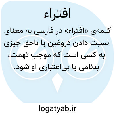 کلمه‌ی «افتراء» در فارسی به معنای نسبت دادن دروغین یا ناحق چیزی به کسی است که موجب تهمت، بدنامی یا بی‌اعتباری او شود. این واژه از ریشه عربی گرفته شده و در متون دینی، ادبی و حقوقی کاربرد فراوان دارد. افتراء معمولاً عملی عمدی است و هدف آن لطمه زدن به آبرو، شخصیت یا اعتبار فرد است. در قانون و حقوق، افتراء به معنای تهمت زدن و نشر اکاذیب علیه دیگران محسوب می‌شود و ممکن است پیگرد قانونی داشته باشد. در ادبیات فارسی، افتراء گاهی برای توصیف دشمنی، حسادت یا رفتار نادرست انسانی که با دروغ و تهمت همراه است به کار می‌رود. از نظر معنایی، با واژه‌هایی مانند تهمت، دروغ‌بافی، کذب و نسبت ناحق هم‌معنی است. این واژه بار اخلاقی و اجتماعی سنگینی دارد و نشان‌دهنده عملی است که اعتماد و روابط انسانی را آسیب می‌زند. این عمل می‌تواند در محافل عمومی، رسانه‌ها یا شبکه‌های اجتماعی رخ دهد و پیامدهای منفی برای فرد یا گروه مورد تهمت داشته باشد.