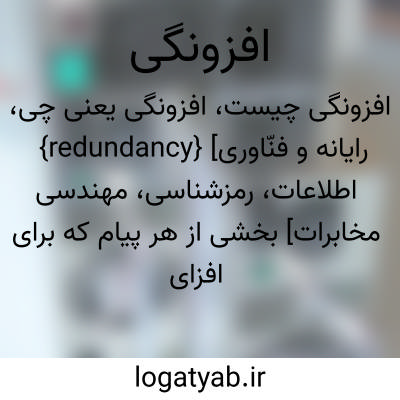 {redundancy} [رایانه و فنّاوری اطلاعات، رمزشناسی، مهندسی مخابرات] بخشی از هر پیام که برای افزایش اطمینان یا ستبری (robustness ) به سامانه اضافه شده است و می توان آن را حذف کرد بی آنکه لطمه ای به اطلاعات وارد شود [رمزشناسی] بخشی از یک متن دودویی که فاقد اطلاعات است