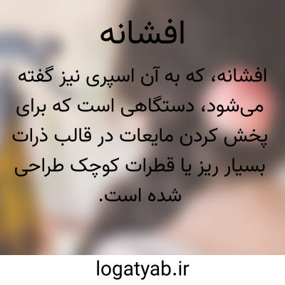 این واژه که به آن اسپری نیز گفته می‌شود، دستگاهی است که برای پخش کردن مایعات در قالب ذرات بسیار ریز یا قطرات کوچک طراحی شده است. این فرآیند که افشاندن نام دارد، از طریق فشار هوا یا نیروی مکانیکی حاصل می‌شود و امکان توزیع یکنواخت و کنترل‌شده مایع را بر روی سطوح یا در فضا فراهم می‌کند. کاربرد افشانه‌ها بسیار گسترده است و از مصارف روزمره خانگی تا فرآیندهای صنعتی پیچیده را در بر می‌گیرد.