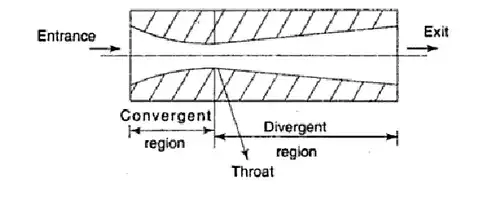 جت آزاد:جت آزاد به عنوان جریانی از سیال در نظر گرفته می شود که از مجرائی خارج شده و به ناحیه نسبتاً بزرگی وارد می شود که شامل سیالی است که سرعت آن به موازات امتداد جریان جت است. ابتدا وضعیتی را در نظر می گیریم که سیال با جریان مادون صوت از شیپوره به داخل اتمسفر جریان می یابد. نشان می دهیم که در چنین جریان هائی فشارخروجی سیال با فشار اتمسفر محیط برابر است. اگر فشار جت از فشار اتمسفر بیش تر بود یک انبساط جانبی در جت صورت می گرفت. این عمل مطابق تئوری جریان هم آنتروپی سرعت جت را کاهش می دهد و در نتیجه فشار در جت لزوماً افزایش می یابد. در این صورت وضعیت بدتر می شد و بدیهی است که ادامه این عمل یک حادثه است. از طرف دیگر این فرض را در نظر بگیرید که فشار اتمسفر از فشار جت بیشتر باشد. آنگاه باید طبق تئوری جریان هم آنتروپی جت متراکم شده و سرعت افزایش یابد. این امر باعث بیشتر شدن فشار در جت شده و وضعیت را بدتر می کند. واضح است که هر دو امکان دارد که منجر به ایجاد یک ناپایداری در جریان جت سیال شود. از اینجا معلوم شده که جت آزاد مادون صوت پایدار است که می توانیم نتیجه بگیریم که فشار جت بایستی با فشار محیط برابر باشد. با این وجود اگر جت مافوق صوت باشد لزومی ندارد که فشار محیط با فشار خروجی برابر باشد. فشار خروجی می تواند برای حالات دو بعدی از طریق یک دسته امواج ضربه ای و انبساطی مایل و برای حالات سه بعدی متقارن از طریق امواج مخروطی با فشار محیط برابر شود. ۳ - مغناطیسی گاهی اوقات از نازل های مغناطیسی برای نیروی پیشرانش برخی موتورها استفاده می شود. در این نوع نازل، جریان پلاسمایی از یک محیط مغناطیسی ( به جای دیواره های صلب جامد ) عبور می کند و در جریان است.