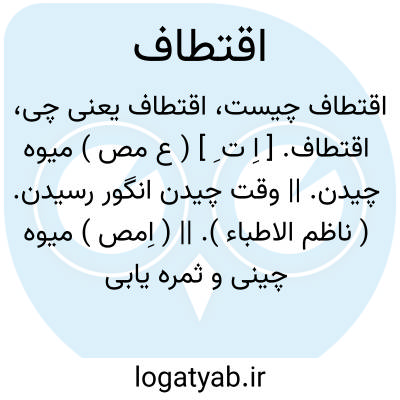 ۱ - ( مصدر ) چیدن میوه چیدن. ۲ - ( مصدر ) فرا رسیدن موسم میوه چیدن. ۳ - برداشتن فرا گرفتن. جمع: اقتطافات.