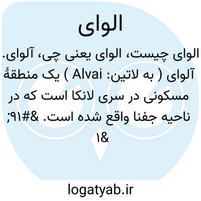 آلوای. آلوای ( به لاتین: Alvai ) یک منطقهٔ مسکونی در سری لانکا است که در ناحیه جفنا واقع شده است.