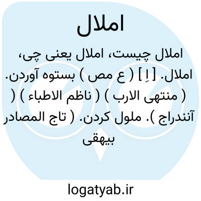 املال. [ اِ ] ( ع مص ) بستوه آوردن. ( منتهی الارب ) ( ناظم الاطباء ) ( آنندراج ). ملول کردن. ( تاج المصادر بیهقی ) ( مصادر زوزنی ) ( غیاث اللغات ) ( آنندراج ). گویند: املنی و امل علی. ( از منتهی الارب ) ( از ناظم الاطباء ). و گویند: ادل فأمل. ( از منتهی الارب ) ( از اقرب الموارد ). || دراز شدن سفر. ( منتهی الارب ) ( ناظم الاطباء ) ( آنندراج ) ( از اقرب الموارد ). || نوشتن از کسی بگفت ِ وی. ( منتهی الارب ) ( ناظم الاطباء ) ( آنندراج ). املا کردن. ( تاج المصادر بیهقی ) ( مصادر زوزنی ) ( ترجمان ترتیب عادل ). گویند: امله؛ اذا قاله فکتب و همچنین: املت علیه الکتاب. ( منتهی الارب ) ( از ناظم الاطباء ). املاء: شرح آلات جنگ و ذخایر بیش از آن بود که بی املالی در بطن کتاب مدرج شود. ( تاریخ جهانگشای جوینی ).